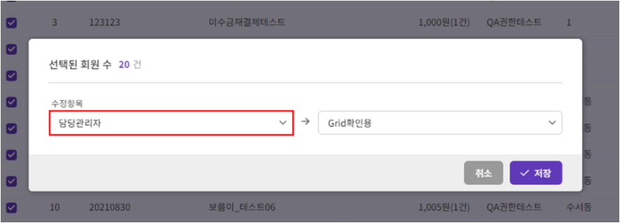 #3. 회원의 담당 관리자를 일괄 수정할 수 있도록 개선되었습니다.